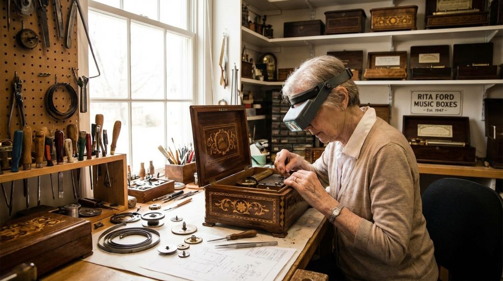 Since 1947, Rita Ford Music Boxes has been dedicated to the repair, restoration, and sale of antique music boxes, guided by a commitment to authenticity, craftsmanship, and musical integrity. This work is not merely about preserving objects—it is about preserving sound, history, and meaning.