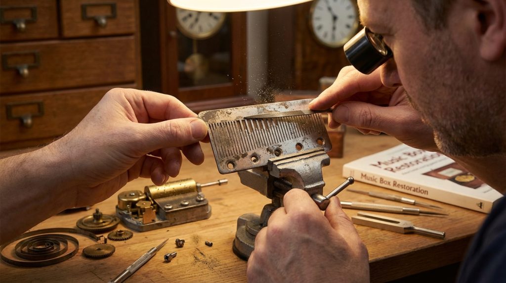 Comb repair and tuning are irreversible processes. Improper filing, incorrect pitch reference, or uneven shaping permanently alters sound and destroys authenticity.